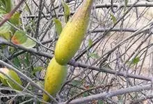 牛角瓜 W. T. Aiton)是夹竹桃科、牛角瓜属直立灌木,高达3米,全株具乳汁;茎黄白色,枝粗壮,幼枝部分被灰白色绒毛。叶倒卵状长圆形或椭圆状长圆形,长8-20厘米,宽3.5-9.5厘米。…全部>>