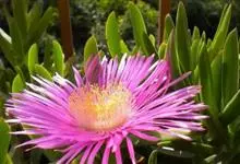 冰叶日中花,是番杏科日中花属的一年生或二年生草本植物。叶互生,卵形或长匙形,基部近心形,抱茎,边缘波状;花淡玫瑰红或带白色,近无梗。冰叶日中花在嫩绿色的叶面和嫩茎上长着密密麻麻的透明囊状细胞,…全部>>
