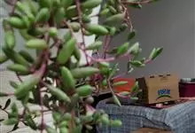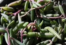 紫玄月是菊科厚敦菊属多年生肉质草本植物。蔓长30-60厘米;茎紫色;叶对生或互生茎上肉质,叶片细圆柱形,中间粗两端细稍弯曲;花序着生于叶腋,头状花序,舌状花黄色,管状花黄色;花期全年。…全部>>
