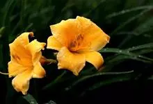 金娃娃萱草:是萱草的人工栽培的园艺品种。地下具根状茎和肉质肥大的纺锤状块根。叶基生,条形,排成两列,长约25厘米,宽1厘米。株高30厘米,花莛粗壮,高约35厘米。螺旋状聚伞花序,花7至10朵。…全部>>