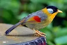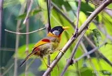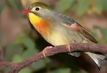 银耳相思鸟小型鸟类,体长14~18厘米。头顶黑色,耳羽银灰色,前额橙黄色;外侧飞羽橙黄色,基部朱红色,极为鲜艳、醒目。尾圆形,尾上、尾下覆羽朱红色,尾暗灰褐色,外侧尾羽橙黄色,其余上体橄榄绿或橄榄黄色。…全部>>