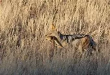 亚洲胡狼是金豺的指名亚种,体型中等、匀称,四肢修长,趾行性,利于快速奔跑。头腭尖形,颜面部长,鼻端突出,耳尖且直立,嗅觉灵敏,听觉发达。犬齿及裂齿发达;上臼齿具明显齿尖,…全部>>