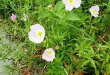 美丽月见草,柳叶菜科月见草属的多年生草本植物。高约50cm;叶披针形,缘有疏齿;花常为2朵着生于茎上部的叶腋处,花瓣有4枚,为粉红色,有香气;果近圆柱形;花期4-8月;果期9-12月。…全部>>