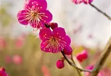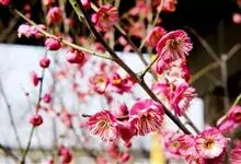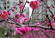宫粉梅 Rehd.)是蔷薇科、李属植物,梅花品系中真梅系直枝梅类宫粉型,其花复瓣至重瓣,呈或深或浅的红色。落叶乔木,高达10米。树干褐紫色,有纵驳纹,小枝细而无毛,多为绿色。叶广卵形至卵形,…全部>>