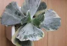 银波锦 DC.)是景天科、银波锦属植物。多浆肉质灌木。茎肉质,直立,株高30-60厘米,小枝白色。对生叶,叶片倒卵形,边缘呈波状,叶面密被银灰色粉,叶长8-12厘米,宽6厘米左右。聚伞状圆锥花序,…全部>>