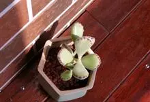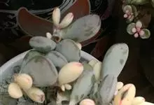 福娘为景天科银波锦属的肉质草本植物。对生的叶片呈短棒状,叶色灰绿,表覆白粉,叶缘外围镶着紫红色,叶片外形多有变化有短圆形、厚厚的方形等不同叶形;花期夏秋。福娘原产于非洲西南部的纳米比亚,…全部>>