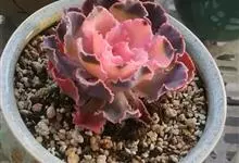 女王花笠,又名扇贝石莲花、女王花舞笠,是景天科拟石莲花属的多肉植物。由美国加利福尼亚州的育种师Dick Wright于1964年培育。特征是呈大波浪状褶皱的红色叶缘和气质高贵的粉紫色调。…全部>>