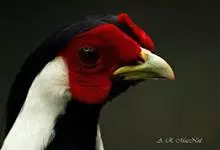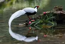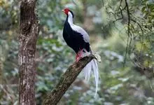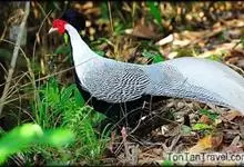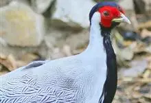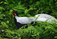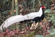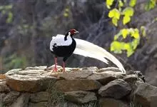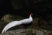 白颈长尾雉:大型鸡类,体长81厘米,体型大小和雉鸡相似。雄鸟头灰褐色,颈白色,脸鲜红色,其上后缘有一显著白纹,上背、胸和两翅栗色,上背和翅上均具1条宽阔的白色带,极为醒目;下背和腰黑色而具白斑;腹白…全部>>