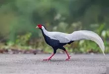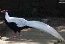 白马鸡共有四个亚种。是大型雉类,体长80-100厘米。通体大都白色,头侧绯红色;头顶具黑色短羽,耳羽簇白色,呈短角状。胸淡灰色或白色,飞羽灰褐色,尾羽特长,大都辉绿蓝色,末端沾紫色光泽,羽枝大都分离,…全部>>