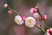 梅:蔷薇科,木本植物。形态多样,通常为小乔木,高4-10米,树皮紫红色,叶片呈弧型或椭圆形,叶边常具小锐锯齿,灰绿色。花单生或有时2朵同生于1芽内,直径2-2.5厘米,香味浓,先于叶开放;花色丰富,…全部>>