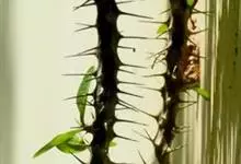 虎刺梅:别称铁海棠,是蔓生灌木植物。茎多分枝,长60-100厘米,直径5-10毫米,具纵棱,密生硬而尖的锥状刺,刺长1-1.5厘米,直径0.5-1.0 毫米,常呈3-5列排列于棱脊上,呈旋转。叶互生…全部>>