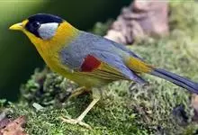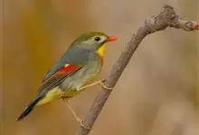 银耳相思鸟小型鸟类,体长14~18厘米。头顶黑色,耳羽银灰色,前额橙黄色;外侧飞羽橙黄色,基部朱红色,极为鲜艳、醒目。尾圆形,尾上、尾下覆羽朱红色,尾暗灰褐色,外侧尾羽橙黄色,其余上体橄榄绿或橄榄黄色。…全部>>