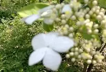 蝴蝶戏珠花 Miq.)是荚蒾科荚蒾属植物。落叶灌木,高达3米;当年小枝浅黄褐色。叶较狭,宽卵形或矩圆状卵形,有时椭圆状倒卵形。花序直径4-10厘米,外围有4-6朵白色、木型的不孕花。果实先红色后变黑色,…全部>>
