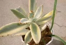 褐斑伽蓝是景天科伽蓝菜属的多年生多肉类植物,茎直立,多分枝,叶生于枝上,肉质叶片匙形,上面密被白色绒毛,下部全缘,叶缘上部有缺刻,缺刻处有深褐或棕色斑块。褐斑伽蓝原产非洲的马达加斯加岛。…全部>>