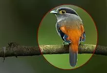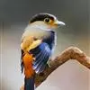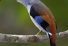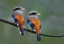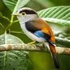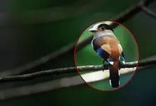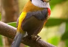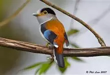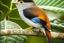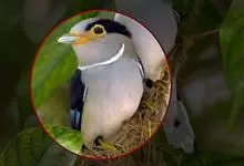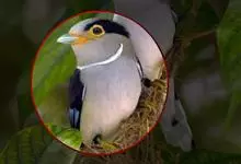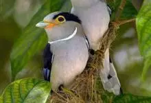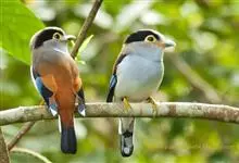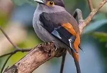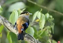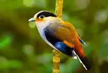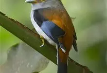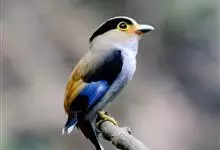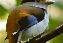 银胸丝冠鸟是雀形目阔嘴鸟科的鸟类,在全世界共分化为10个亚种。体长16-18厘米。嘴宽阔、天蓝色,基部橙色。鼻孔圆形具宽阔的黑色眉纹。上背烟灰色,下背至尾上覆羽栗色,两翅的翼缘白色,翼角羽缘缀浅灰蓝色,…全部>>