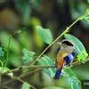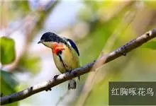红胸啄花鸟:体重5-10克,体长60-92毫米。体形纤小。雄鸟上体呈辉亮的金属绿色;下体棕黄,胸部具一朱红色块斑,极易与其他啄花鸟区别。雌鸟上体呈橄榄绿,下体棕黄色。虹膜褐色,嘴褐黑色或角灰色,…全部>>
