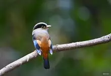 银胸丝冠鸟是雀形目阔嘴鸟科的鸟类,在全世界共分化为10个亚种。体长16-18厘米。嘴宽阔、天蓝色,基部橙色。鼻孔圆形具宽阔的黑色眉纹。上背烟灰色,下背至尾上覆羽栗色,两翅的翼缘白色,翼角羽缘缀浅灰蓝色,…全部>>