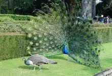 绿孔雀是鸡形目雉科孔雀属鸟类,别名:孔雀、越鸟、爪哇绿孔雀。雄性绿孔雀全身呈翠绿色,并反紫铜色光。头顶有一簇直立的冠羽,尾上复羽发达的约长1米,每羽端部有一个蓝色和翠绿色镶嵌的眼状斑,…全部>>