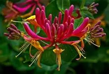 忍冬,是忍冬科忍冬属半常绿缠绕藤本植物,别名又称鸳鸯藤、金银花。忍冬幼枝呈橘红褐色,常常覆盖粗糙的硬毛;叶片一般有披针形和卵形,边缘有粗糙的绒毛,上面深绿色,下面淡绿色;忍冬花苞片大,花瓣卵形或椭圆形,…全部>>