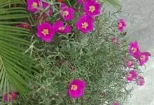 大花马齿苋:一年生草本,高10-30厘米。茎平卧或斜升,紫红色,多分枝,节上丛生毛。叶密集枝端,较下的叶不规则互生,叶片细圆柱形,无毛。花单生或数朵簇生枝端,直径2.5-4厘米,…全部>>