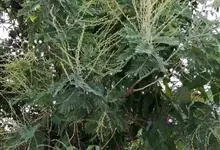 银荆是豆科相思树属的无刺灌木或小乔木。株高达15米;\t嫩枝及叶轴被灰色短绒毛;叶为二回羽状复叶,银灰或淡绿色,有时在叶尚未展开时,稍呈金黄色;头状花序,复排成腋生的总状花序或顶生的圆锥花序,…全部>>