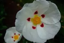 岩蔷薇是半日花科岩蔷薇属植物,多年生直立亚灌木,高约1.5-2.5米,全体具胶黏腺体。枝条褐色,侧枝分为生长枝和结果枝。单叶对生,披针形至线状披针形,长5-8厘米,宽0.5-1.5厘米。…全部>>