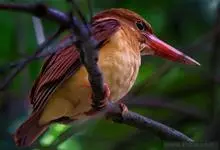 赤翡翠:是佛法僧目翠鸟科的鸟类。共有10个亚种。体长25-27厘米,体重76-77 克。头、颈、背、腰尾上覆羽、尾羽棕赤色,是翡翠亚科中分布最北的成员,虽然其主要分布区位于东南亚地区,…全部>>