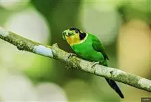 三宝鸟佛法僧科三宝鸟属的鸟类,为佛法僧目三宝鸟属下的一种中小型攀禽,共有10个亚种,体长26-29厘米,体重107-194克。通体蓝绿色,头和翅较暗,呈黑褐色,初级飞羽基部具淡蓝色斑,飞翔时甚明显。…全部>>