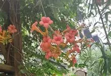 凌霄 Schum.),别名上树龙、五爪龙、九龙下海等,为紫葳科凌霄属的攀援藤本植物。其茎木质,以气生根攀附于它物之上。叶对生,为奇数羽状复叶;小叶卵形至卵状披针形,边缘有粗锯齿;顶生疏散的短圆锥花序,…全部>>