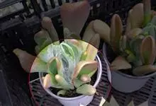 唐印为景天科伽蓝菜属的多年生肉质草本植物。植株中型,株高50厘米,宽20厘米,多分枝;叶片肉质,对生,卵形,全缘,先端钝圆,叶片淡绿色至灰绿色,表面被有厚厚的白粉,光照充足时,叶缘呈红色;圆锥花序,…全部>>