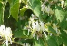 山银花在华南地区野外山林生长。木质藤本,长2~5m。树皮黄褐色渐次变为白色,嫩时有短柔毛。叶对生,卵圆形至椭圆形,长4~8cm,宽3.5~5cm,上面绿色,主脉上有短疏毛,下面带灰白色,密生白色短柔…全部>>