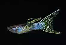 孔雀鱼,是鳉形目花鳉科花鳉属鱼类。孔雀鱼体形修长,其形态变化主要在尾鳍,常见的尾鳍形态有圆尾、尖尾、铲尾等。雌、雄鱼差别明显,雄鱼的大小只有雌鱼的一半左右,雄鱼体色丰富多彩,尾部形状千姿百态。…全部>>