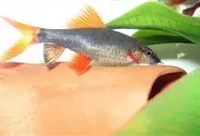 彩虹鲨是鲤形目鲤科野鲮属鱼类,别名红鳍野鲮、红鳍鲨。成鱼体长12厘米,体呈长梭形,侧稍扁。尾鳍呈叉状;背鳍特别宽大,嘴上有两根胡须。鱼体呈浅褐色,各鳍均呈橘红色;雄鱼的臀鳍镶有黑边,…全部>>