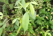山银花在华南地区野外山林生长。木质藤本,长2~5m。树皮黄褐色渐次变为白色,嫩时有短柔毛。叶对生,卵圆形至椭圆形,长4~8cm,宽3.5~5cm,上面绿色,主脉上有短疏毛,下面带灰白色,密生白色短柔…全部>>