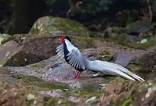 白鹇,是鸡形目雉科鹇属的一种留鸟。雄鸟上体白色并具黑色纹,下体黑色,头顶具黑色长羽冠,尾白而长;雌鸟体型较小,以橄榄褐色为主,下体具白色或皮黄色细纹;虹膜褐色,眼周具红色裸皮,喙黄色,脚鲜红色。…全部>>