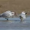 鸥嘴噪鸥,中型水禽,体长31~39厘米。夏羽额、头顶、枕和头的两侧从眼和耳羽以上黑色。背、肩、腰和翅上覆羽珠灰色。后颈、尾上覆羽和尾白色,中央一对尾羽珠灰色。尾呈深叉状。冬羽头白色,头顶和枕缀有灰色…全部>>