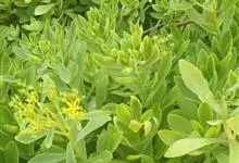 费菜 ’t Hart),又名土三七、三七景天、景天三七等,为景天科费菜属多年生草本植物。费菜根状茎短,有1-3条茎,直立。叶互生,狭披针形、椭圆状披针形至卵状倒披针形;叶坚实,近革质。聚伞花序有多花,…全部>>