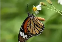 黑脉金斑蝶:翅阔8.6-12.4厘米。雄蝶较雌蝶为大。成年蝶颜色鲜艳,翅膀上有显眼的橙色及黑色斑纹,周围是宽阔的黑色边框,布有许多白色斑点。这种引人注目的着色是对捕食者的视觉警告,表示这个物种有毒;…全部>>