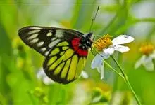 报喜斑粉蝶是粉蝶科斑粉蝶属的一种动物,又名红肩粉蝶、藤粉蝶等。幼虫群集性很强,从同一卵块孵化出的幼虫,幼龄期全部群集在一起取食,高龄幼虫常分散成小群。幼虫群集危害叶片,造成秃枝,严重者可将树吃成光杆,…全部>>