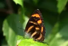 虎斑蝶,Danaus genutia ,是斑蝶属的一种,常见于湿地公园内。雄性虎斑蝶经常伏于吊裙草 上吸食汁液,以制造吸引异性的香气。虎斑蝶翅膀腹面鲜橙色,翅脉和翅边缘黑色,边缘上有两行小白点,…全部>>