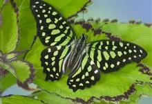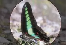 碎斑青凤蝶是凤蝶科、青凤蝶属昆虫。体背面黑色,具绿毛,腹面淡白色。翅黑褐色,斑纹淡绿色或浅黄色;前翅中室有5个斑纹排成1列;后翅基半部有5-6个大小不同的纵斑。后翅亚外缘的斑列加宽,…全部>>