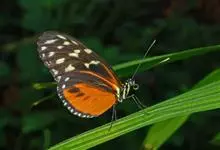 虎斑蝶,Danaus genutia ,是斑蝶属的一种,常见于湿地公园内。雄性虎斑蝶经常伏于吊裙草 上吸食汁液,以制造吸引异性的香气。虎斑蝶翅膀腹面鲜橙色,翅脉和翅边缘黑色,边缘上有两行小白点,…全部>>