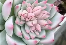 芙蓉雪莲是景天科拟石莲花属的植物。由于叶片表面覆盖着一层厚霜粉,通常呈现出白色;日照增多,温差增大后叶缘、叶尖会呈现出粉红色或橙红色。…全部>>