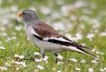 白斑翅雪雀:属典型的高原鸟类,共有7个亚种,体重30-34克,体长142-169毫米,较雪雀属中其他种体型稍大;雄鸟头灰,颏黑,翕和肩富于褐色;翼大部白色;除一对中央尾羽黑色外其余均为白色而具黑色羽端,…全部>>
