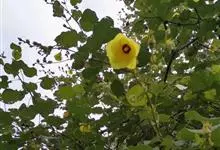 海滨木槿是锦葵科木槿属植物,落叶小乔木,株高3-5米,胸径20厘米,扁球形树冠,枝叶繁盛。厚纸质单叶互生,扁圆形、倒卵形或宽倒卵形,先端钝近平,具短突尖,基部圆形或浅心形,叶缘中上部具细圆齿,…全部>>