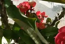 虎刺梅:别称铁海棠,是蔓生灌木植物。茎多分枝,长60-100厘米,直径5-10毫米,具纵棱,密生硬而尖的锥状刺,刺长1-1.5厘米,直径0.5-1.0 毫米,常呈3-5列排列于棱脊上,呈旋转。叶互生…全部>>