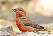 红交嘴雀:体重28-48克,体长145-175毫米。是燕雀科交嘴雀属的鸣禽。是一种小型的燕雀。雄鸟通体砖红色,上体较暗,腰鲜红色;翼和尾近黑色,头侧暗褐色;雌鸟暗橄榄绿或染灰色,…全部>>