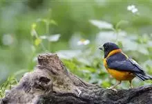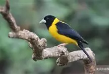黄颈拟蜡嘴雀:小型鸟类,体长20-22厘米。嘴粗大,黑色。雄鸟整个头、颈、颏、喉和上胸辉黑色,两翅和尾亦为黑色,其余上体橙黄色,下体鲜黄色。雌鸟头、颈、颏、喉和上胸中央灰色或暗灰色,…全部>>