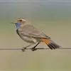 蓝点颏亦称“蓝喉歌鸲”,通称蓝靛颏儿。身体大小和麻雀相似,体长12-13厘米,体重17-18克。头部、上体主要为土褐色。眉纹白色。尾羽黑褐色,基部栗红色。颏部、喉部辉蓝色,下面有黑色横纹。下体白色。…全部>>