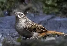 旋木雀是旋木雀科旋木雀属的一种动物。小型鸟类,体长12~15厘米,平均重10克。嘴长而下曲,上体棕褐色具白色纵纹,腰和尾上覆羽红棕色,尾黑褐色,外翈羽缘淡棕色,翅黑褐色,翅上覆羽羽端棕白色,…全部>>